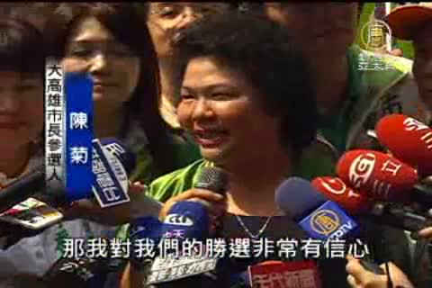 【新唐人亞太台2010年9月15日訊】今天九月十五號,正好是中國黃曆八月八號的好日子,不少市議員及五都選舉的候選人,都選在今天登記參選,其中包括高雄市長陳菊選和話題不斷的陳致中,被問到監察院對高捷的糾正時,陳菊表示,高捷不可能停駛,陳致中則不願回應官司問題。我們來自高雄的報導。