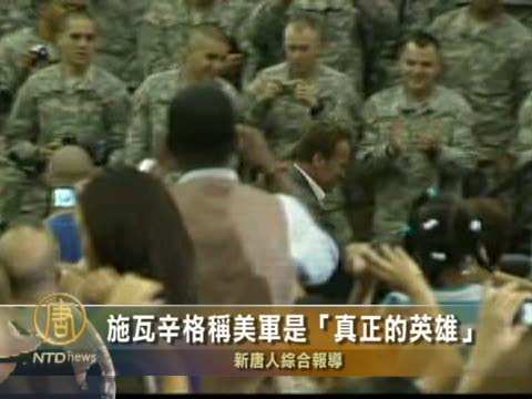 【新唐人2010年9月16日訊】正在亞洲進行貿易考察的美國加州州長施瓦辛格,星期三(9月15日)視察了韓國漢城的美軍基地,會見了那裏的士兵和他們的家人。施瓦辛格風趣的說,自己是他們的粉絲,他們才是“真正的動作片英雄”。