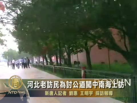 【新唐人2010年9月17日訊】河北十位老訪民,幾年來無數次往返北京上訪,問題不但沒得到解決,有人還多次遭到關押﹔近期他們嚐試闖入中南海,找最高領導人反映冤情,其中年近80的於玉書,十天內已經闖了兩次。不過,他們最後都被當局抓捕關押,仍然沒有人理會他們的冤情。