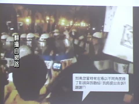 民進黨立法委員 翁金珠:「我在警察重重包圍下,被踩踏,左手也是一樣,被踩踏成三段,動員一萬名警察,說是非常好,但是現在高等法院法官已經判定了,認為你執法過當,臺北市政府你應該出面認錯道歉」