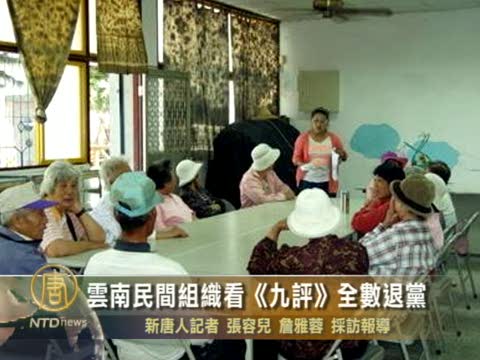 【新唐人2010年9月17日訊】《九評共產黨》一書和光盤,目前在中國大陸廣泛流傳,影響力還達到偏僻的雲南。雲南地區的窮人協會成員,每週集體研讀《九評》,一位成員近日透露,他們的11萬成員在認清中共本質後,已經全數退出中共相關組織。
