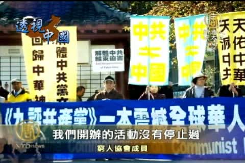 【新唐人亞太台2010年9月17日訊】《九評共產黨》一書和光盤,目前在中國大陸廣泛流傳,影響力還達到偏僻的雲南。雲南地區的窮人協會成員,每週集體研讀《九評》,一位成員近日透露,他們的11萬成員在認清中共本質後,已經全數退出中共相關組織。