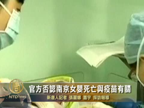 【新唐人2010年9月18日訊】南京市江寧區一名3個月大女嬰,日前接種“百白破”和小兒麻痺疫苗後猝死,南京市衛生局表示與接種疫苗無關,家長不認同官方的說法,希望有關單位能查清嬰兒死因。