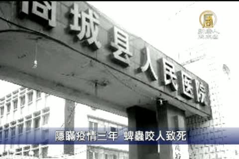 【新唐人亞太台2010年9月18日訊】今年夏天,中國多地爆發遭蜱蟲叮咬致死事件,患者最快幾天內就會因器官衰竭死亡;河南衛生部門坦承,3年前就出現疑似病例,但是沒有對外公佈。