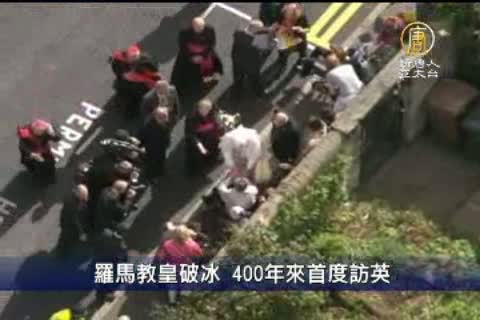 【新唐人亞太台2010年9月18日訊】羅馬天主教皇本篤十六世星期四(16號)抵達蘇格蘭,開始為期4天的英國訪問。這是自16世紀英格蘭教會脫離天主教之後,羅馬教皇對英國的首次官方正式訪問,上次教皇訪問英國是教皇約翰·保羅二世在28年前的非正式訪問。