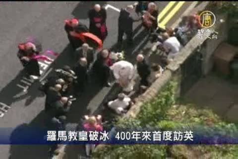 【新唐人亞太台2010年9月18日訊】羅馬天主教皇本篤十六世星期四(16號)抵達蘇格蘭,開始為期4天的英國訪問。這是自16世紀英格蘭教會脫離天主教之後,羅馬教皇對英國的首次官方正式訪問,上次教皇訪問英國是教皇約翰·保羅二世在28年前的非正式訪問。
