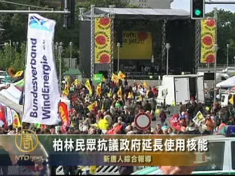 【新唐人2010年9月19日訊】9月18日,德國數千民眾遊行穿過柏林市中心,抗議政府延長使用核能的計劃。此舉是針對默克爾政府聲稱——抗議者不足以代表大多數德國人之後,柏林民眾的一次更大規模的遊行抗議。