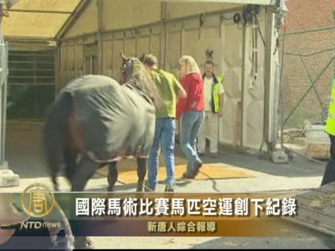 【新唐人2010年9月19日訊】9月和10月間,國際馬術比賽將有史以來第一次在歐洲之外舉行,導致了有史以來最大規模的馬匹空運作業。
