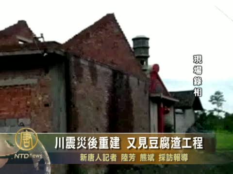【新唐人2010年9月21日訊】四川大地震摧毀塔水鎮很多的房子,災後4個月當地就展開重建,原訂09年1月交房,幾百戶房子出現嚴重質量問題,在村民提出抗議下停工,目前災民在沒有新房子住的情況下又要支付房貸,多次到鎮政府反映都沒有結果。