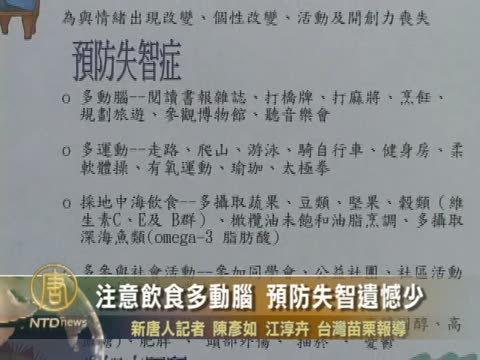 【新唐人2010年9月21日訊】今年9月是國際失智症月,為響應這個全球性的活動,台灣苗栗縣衛生局與署立醫院攜手合作舉辦了一系列宣導活動,讓民眾認識失智症。