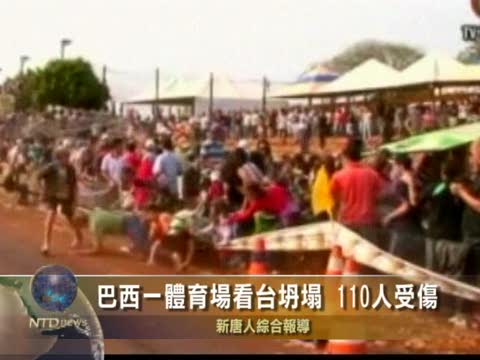 【新唐人2010年9月21日訊】巴西南部的巴拉那州的一個體育館當地時間19日正在舉行賽車比賽時,突然體育場內一處看臺坍塌,造成110人受傷。