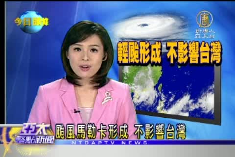 【新唐人亞太台2010年9月21日訊】凡那比剛走,又有颱風了。今天下午2時,今年第12號颱風馬勒卡形成,不過,氣象局預測,目前位在關島附近海面的馬勒卡,距離高雄東南東方2,540公里,過去 2小時以每小時10公里速度向西前進;預測明天開始會逐漸朝北前進,直撲日本南方海面,不會影響台灣。