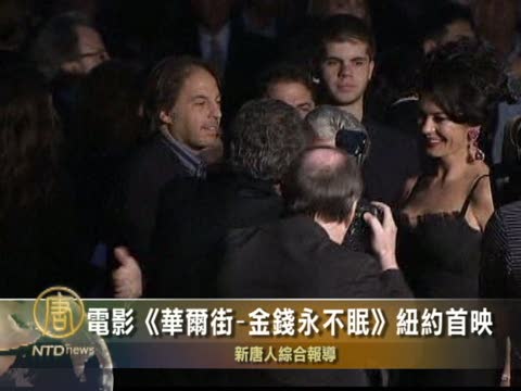 【新唐人2010年9月21日訊】由好萊塢巨星邁克爾•道格拉斯主演的電影《華爾街:金錢永不眠》,9月20號在美國紐約舉行了盛大的首映儀式。 目前正與癌症作戰的道格拉斯也抱病出席了首映式。