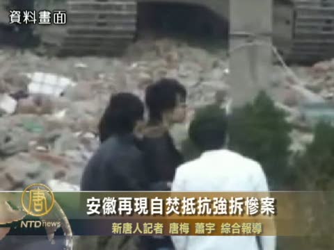 【新唐人2010年9月22日訊】就在江西省宜黃縣拆遷戶自焚抗拆,一死、兩重傷的悲劇發生不久,安徽甯國市再傳民眾自焚抵抗強拆慘案,網民披露該案的帖子在網絡上被刪除,只留官方的通稿,事件的真相被掩蓋。