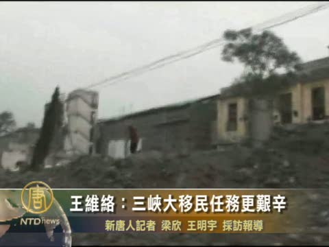 【新唐人2010年9月22日訊】最近,中共官方媒體報導稱:三峽工程百萬移民截至2010年宣告結束,這“世界級難題”終告破解。不過,水利專家王維絡認為,難題尚未破解,而是將更艱辛,中共當局只不過是想利用報導,對這世界最大的爛尾樓畫上句號。