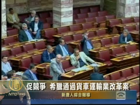 【新唐人2010年9月23日訊】儘管遭到卡車司機們連續10多天的罷工抗議,希臘議會在9月22日仍然以絕對優勢通過了貨車運輸業改革法案,顯示出希臘政府為實現運輸業自由競爭的堅定決心。