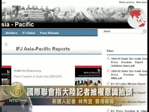 【新唐人2010年9月23日訊】國際記者聯會最近關注中共當局限制突發事件的報導和對記者的打壓,該會香港和中國區代表胡麗雲擔憂情況會越來越嚴重,但她同時指出,大陸傳媒界的維權意識正在抬頭。
