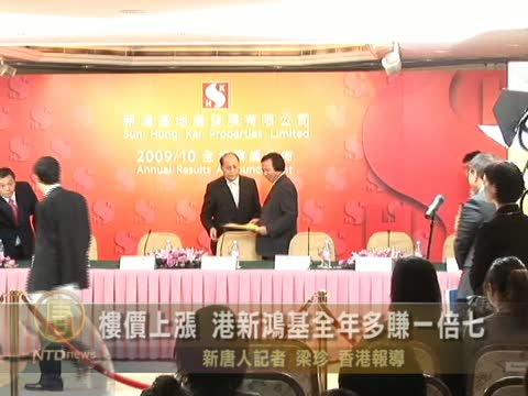 【新唐人2010年9月23日訊】亞洲最大的地產商新鴻基地產星期一公布全年業績。副主席郭炳江表示,受惠樓市復甦,物業重估收益急增,新地全年多賺1.7倍,達到約280億港元,但他提醒準備置業人士買樓要小心。