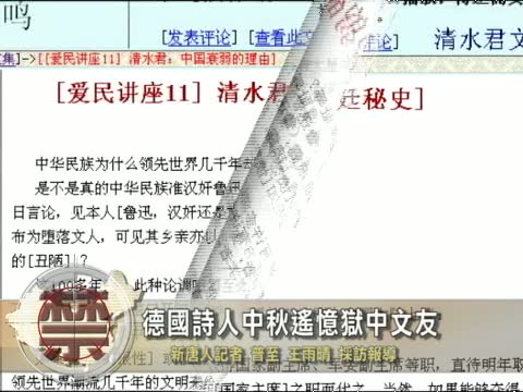 【新唐人2010年9月24日訊】“海上生明月,天涯共此時”。每逢中秋,旅德詩人徐沛就會想起一位才華橫溢的文友。他就是以仗義敢言,針砭時事而聞名網絡的民主人士清水君。七年前的中秋節,清水君遭到中共當局的抓捕,至今還被囚禁在獄中。