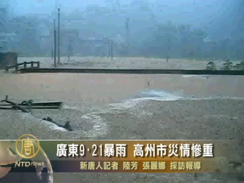 【新唐人2010年9月25日訊】中國廣東“9•21”的特大暴雨,引發高州市山洪災害,洪水和泥石流瞬間摧毀大片民房,馬貴鎮、大坡鎮兩鎮災情慘重,沖毀很多學校。官方統計,截至9月23日17時,颱風“凡亞比”造成廣東省8市26個縣市126.3萬人受災,因災死亡55人。