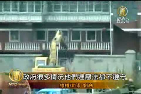維權律師劉巍:「現在你看有很多人自焚、自殺的,為了拆遷,都沒有阻止拆遷的進行。即使依據這個拆遷管理條例,這個惡法,政府很多情況他們連惡法都不尊守。」