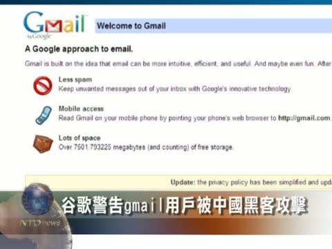 【新唐人2010年9月26日訊】谷歌開始向一些Gmail用戶發出警告,警告他們有黑客從中國境內試圖侵入他們的Gmail帳戶。
