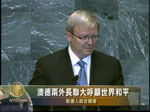 【新唐人2010年9月26日訊】星期六(9月25日),在聯合國第65屆峰會上,澳德兩國外長呼籲維護世界和平,制止伊朗與朝鮮的核武發展和恐怖份子行為。