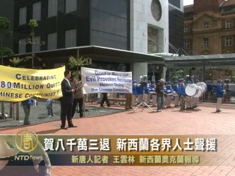【新唐人2010年9月26日訊】9月25日,新西蘭民眾在奧克蘭市中心舉行,慶祝超過八千萬華人三退集會。新西蘭各界知名人士或發來賀電,或到場發聲支援。正參加奧市超級都市的選舉人更強調,不應該因為經濟考慮,而對中共在信仰及人權的迫害方面保持沉默。