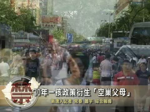【新唐人2010年9月27日訊】伴隨中國第一代獨生子女走出家庭,外出求學、工作,他們留守在家的父母也進入了失落、焦慮的 “中年空巢”期。專家指出,中共政府30年前開始實施「一對夫婦只生育一個孩子」的政策,催生出現在的“空巢現象”。而未來會有更多的“三口之家”被“中年空巢”家庭所取代。