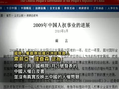 國際人權觀察組織亞洲部負責人索菲亞•理查森認爲:中國(共)國務院9月26號發表的中國人權白皮書,幷沒有真實反映出中國的人權問題,從正面來講是失去了一次改善中國人權的機會,從負面來講則是中共政府在粉飾現實。