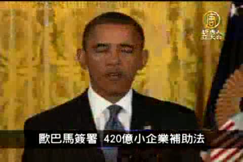 美國總統歐巴馬於27號在白宮東廳,簽署了一項金額420億美元的小企業補助法,這項法案將為小企業減免稅收和提供優惠貸款,來幫助它們成長和增加就業。