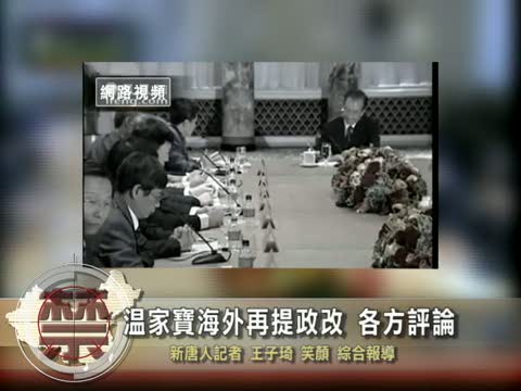 【新唐人2010年9月29日訊】中共國務院總理溫家寶22號在紐約與美國華文媒體和港澳媒體負責人進行座談。他在回答被外界稱為美國“人民日報”的《僑報》總裁謝一寧的提問時,再次強調了「政治體制改革」的重要性。當天晚間,中共官方媒體報導這次座談會時,再次把溫家寶有關政改的講話「和諧」了。