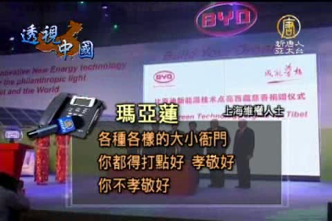 上海維權人士 瑪亞蓮:「很多累積財富的人,他感到不穩定,為什麼不穩定,因為社會制度不穩定,今天是富豪,明天他可能一下子就貧窮了,『有權不用,過期作廢』,各種各樣的大小衙門,你都得打點好,孝敬好,你不孝敬好,這些地頭蛇,他們就找你的碴,他有一種嚴重的危機感,一種不安全感,所以他也不可能去行善的。」