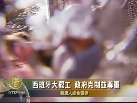 【新唐人2010年9月30日訊】9月29日,西班牙兩家工會發動八年來首次全國大罷工,以抗議政府用削減預算的方式來償還國債的做法。據地方媒體說,罷工抗議過程中,一些反社會制度團體成員與維持秩序的警察發生了一些衝突,但是大部分抗議活動沒有發生大的衝突事件,政府也表示尊重工人罷工的權利。