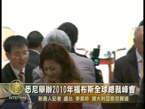 【新唐人2010年9月30日訊】為期兩天的第十屆福布斯全球總裁峰會於9月28、29日在澳大利亞悉尼舉行。此次峰會由澳大利亞聯邦政府和紐省政府聯合主辦,紐省省長肯納莉以及400多位嘉賓就如何從全球金融危機中獲得經驗教訓、並能夠讓世界的經濟形勢恢復等戰略性議題進行了探討。