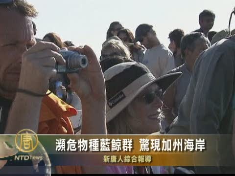 【新唐人2010年9月30日訊】藍鯨是瀕臨滅絕的物種,被稱爲世界上最大的動物。最近,成群結隊的藍鯨現身在加利福尼亞海岸,令遊客、鯨豚保護組織和海洋生物學家都興奮不已。