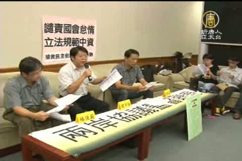 【新唐人亞太台2010年9月30日訊】繼兩岸簽訂ECFA後,年底預計將再簽署「兩岸投資保障協議」,但攸關中資來台的兩項規範因有違法疑慮,立法院會自去年10月16日交付經濟委員會審查,眼看今年10月8日的審查期限馬上要到了。依立法院<職權行使法>第61條,將視為審查通過。兩岸協議監督聯盟日前對此提出譴責,要求立委儘速審查。
