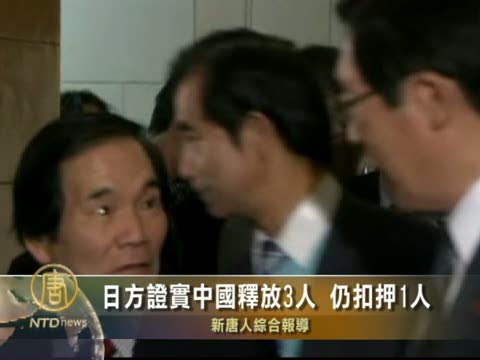 【新唐人2010年9月30日訊】日本外交部9月30號證實,上周遭中國當局拘押的4名日本人,已有3人獲釋。日本要求迅速釋放第四人。
