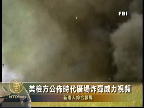 【新唐人2010年9月30日訊】美國檢調機構29號公布了一段聯邦調查局(FBI)的視頻,顯示今年5月紐約時代廣場未遂汽車爆炸案中炸彈的潛在威力。檢察官目前正在尋求判處被控企圖發動那場汽車炸彈攻擊的巴裔美國男子終身監禁。