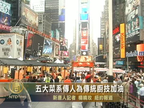 新唐人廚技大賽首次在時代廣場舉行,五大菜系傳人摩拳擦掌,甚至曾參加過大賽,並獲獎的廚師也不願意錯過。