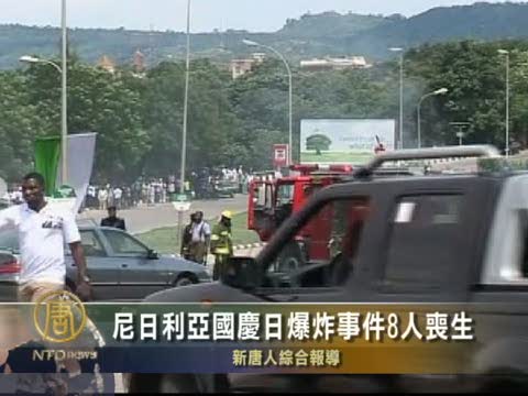 【新唐人2010年10月2日訊】奈及利亞10月1日慶祝獨立50週年之際,該國首都發生兩起炸彈爆炸襲擊事件,造成8人喪生,幾十人受傷。