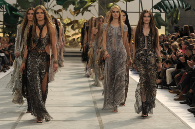 意大利的時裝設計師每個人都特點鮮明,27號,羅伯特•卡沃利(Roberto Cavalli)帶著他一貫狂野和張揚的個性閃亮登場。這也是他從業40週年的慶典展。