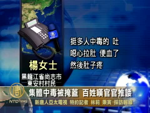 黑龍江省尚志市東安村村民楊女士:「挺多人中毒的,吐,噁心拉肚,便血了,然後肚子疼」