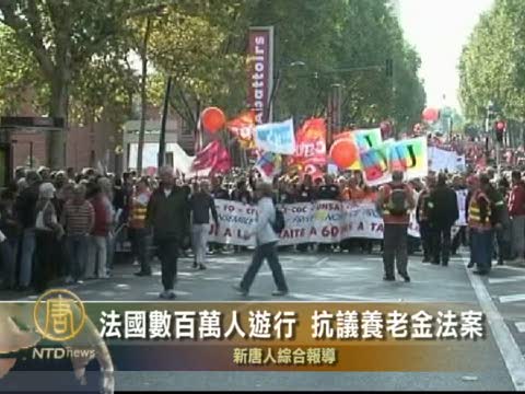 【新唐人2010年10月2日訊】10月2號,法國工會在全國200多個不同地點,組織了一場大規模遊行,來抗議法國上議院計劃提升退休年齡的改革法案。工會表示,這次是大學生第一次加入,當天預計有三百萬人參加遊行。