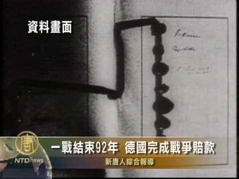 【新唐人2010年10月3日訊】第一次世界大戰已經結束92年了,不過,星期天,德國將正式完成第一次世界大戰的戰爭賠款。讓我們一起看看這是為甚麼。