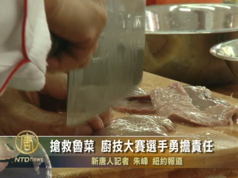 【新唐人2010年10月3日訊】歷史悠久的魯菜到了元明清時期已自成菜系,並成為宮廷御膳珍品,也發展為北方菜系的傑出代表,是中華料理五大菜系中影響最大的菜系。然而魯菜現在卻面臨著失傳的危險。參加本臺廚技大賽的魯菜選手從多年的老師傅到年輕人都有,這次來參賽的目的之一就是要挽救魯菜。