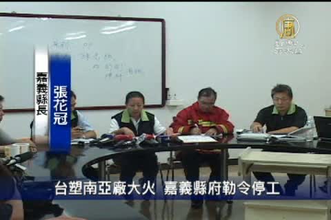 【新唐人亞太台2010年10月3日訊】新聞一開始帶您關心工安意外消息,台塑南亞塑膠嘉義廠,今天上午發生大火,附近鄉鎮消防隊前往灌救,並派出直昇機到現場撲救,但是因火勢過大已經持續延燒超過10個小時。對此,嘉義縣政府在下午宣布,對台塑南亞二廠處以台幣100萬元的罰緩,並且勒令工廠立即無限期停工。