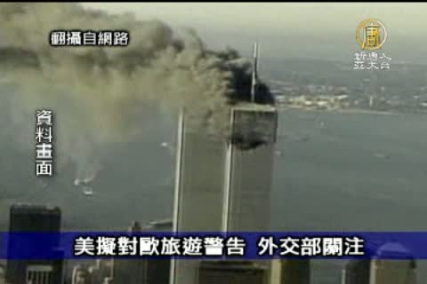 外電報導,最新情資顯示,蓋達組織在歐洲的威脅,美國政府計畫發佈對歐洲的旅遊警告,建議旅歐的美國人提高警覺。台灣外交部則表示,正密切關注歐洲其他地區情勢,隨時因應。