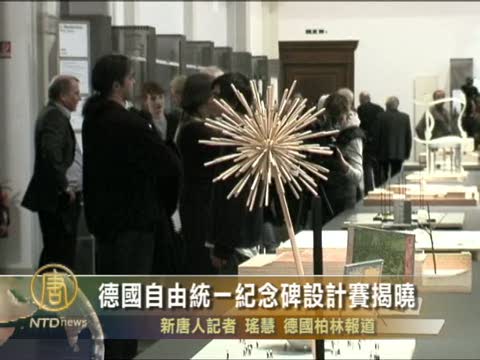 【新唐人2010年10月4日訊】10月3日, 德國政府為紀念德國統一20週年,在全國舉辦了各種慶祝紀念活動,引人注目的是在柏林市中心馬丁·格魯皮烏斯博物館舉辦的自由統一紀念碑設計比賽展,德國文化部長貝恩德·諾伊曼親自宣佈了紀念碑設計比賽結果,下面請看來自德國柏林的詳細報導。