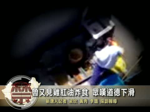 【新唐人2010年10月4日訊】讓人作噁的口水油、地溝油已經讓大陸的消費者驚心膽跳。現在又有山東德州網友曝光不肖小販在衛生惡劣的環境內用雞屁股提煉“雞肛油”來炸製食物後在市場銷售。山東民衆感嘆,大陸道德觀念下滑,中共當局查處不力。